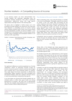 rontier Markets can afford to pay higher dividends to attract investors whilst not compromising their growth. Being at an early stage of development, they have higher growth margins (higher SGR), which means that considering an equal amount of investment, they manage to produce more profits (higher ROE) than both Emerging and Developed Markets.